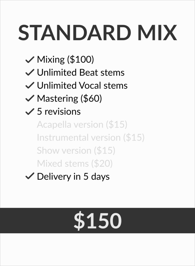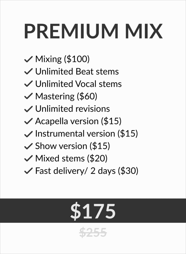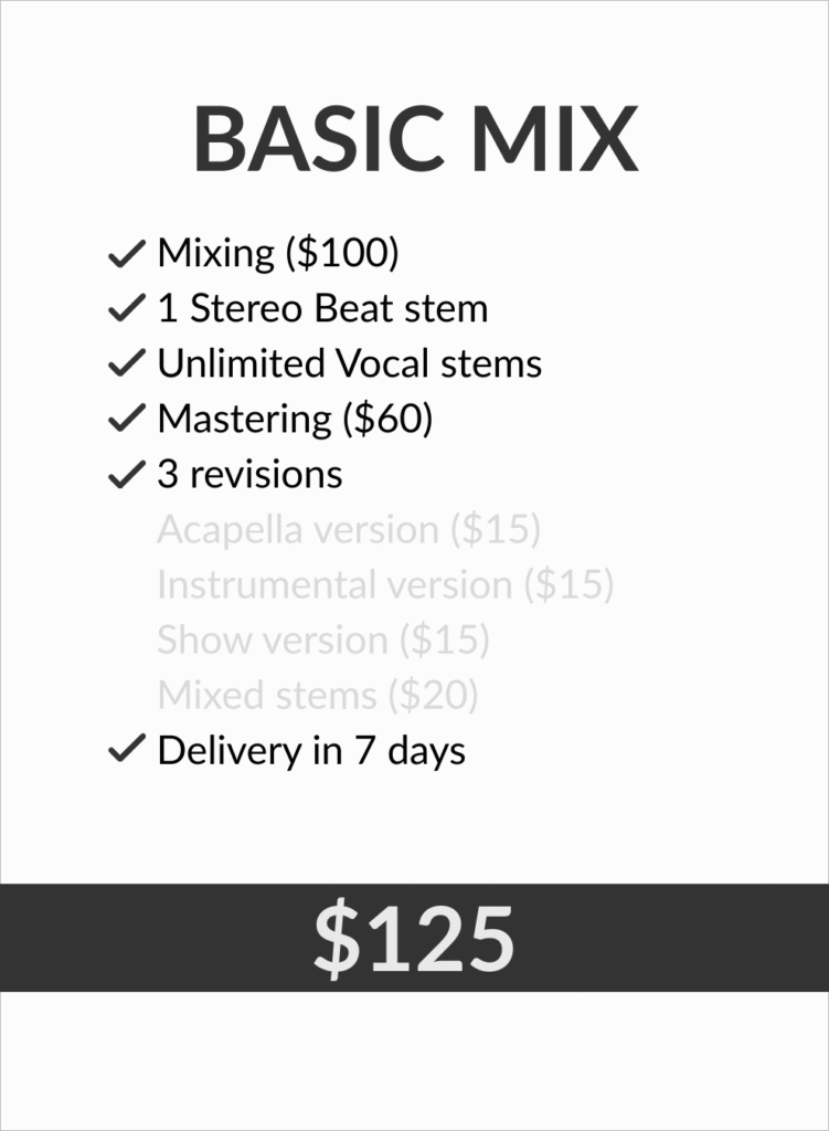 My goal is to help you take your song from a demo to a professional sound that meets industry standards, just as I’ve done with thousands of other songs.